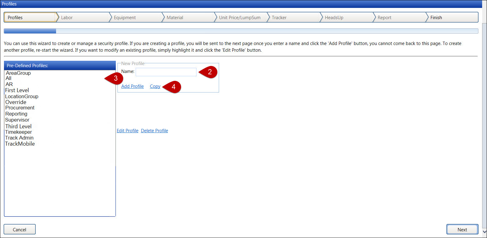 Select a profile from the Pre-Defined Profiles list box to highlight it.