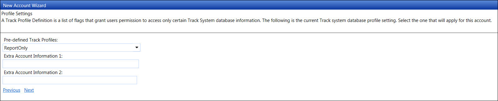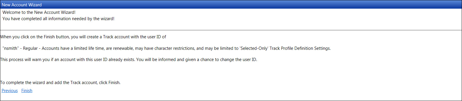 The regular account user will use this user ID to log in to the Track application. Enter a login ID into the Track User ID text box.
