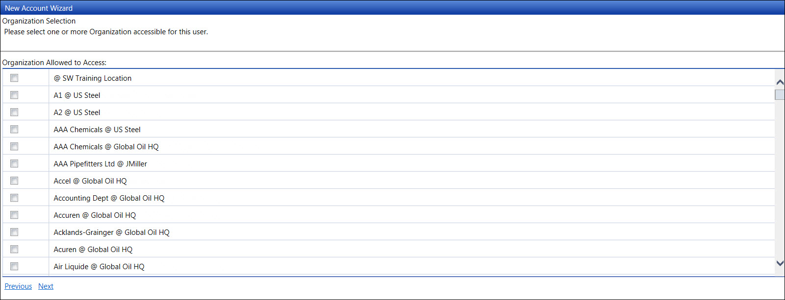 Regular account user may have access to one or more organizations. From the Organization Selection screen, click only the checkboxes next to the organizations that the user is allowed to have access to.