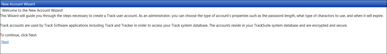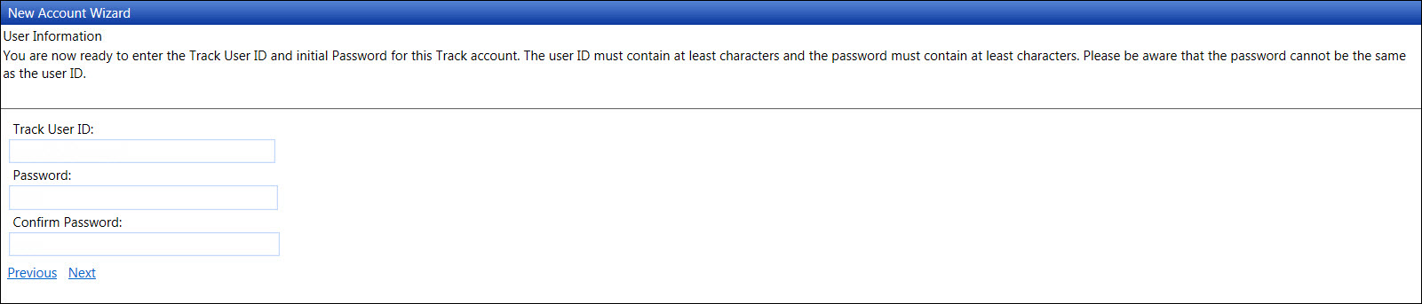 The site administrator will use this user ID to log in to the Track Admin application. Enter a login ID into the Track User ID text box.