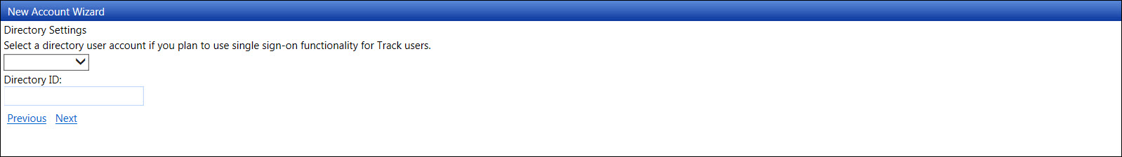 The Directory Settings screen is available for the single sign-on setup. Select a directory user account for the single sign-on feature for Track user from the drop-down list. Otherwise, proceed to step 23.