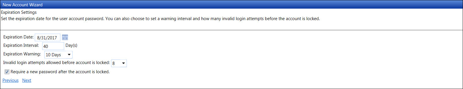 Click the Require a new password after the account is locked. checkbox if the user is required to request a new password from Track Administrator.